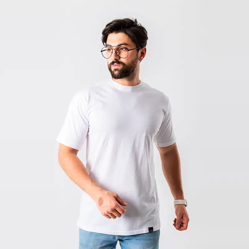 تفاصيل تي شيرت قطني أبيض كلاسيكي