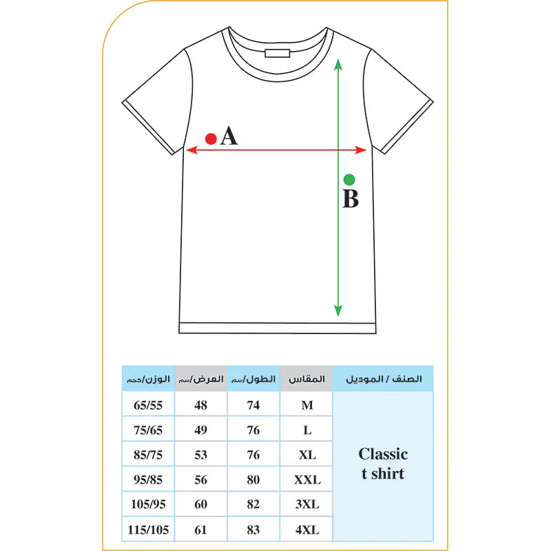 المقاسات المتوفرة من تي شيرت قطني أبيض كلاسيكي